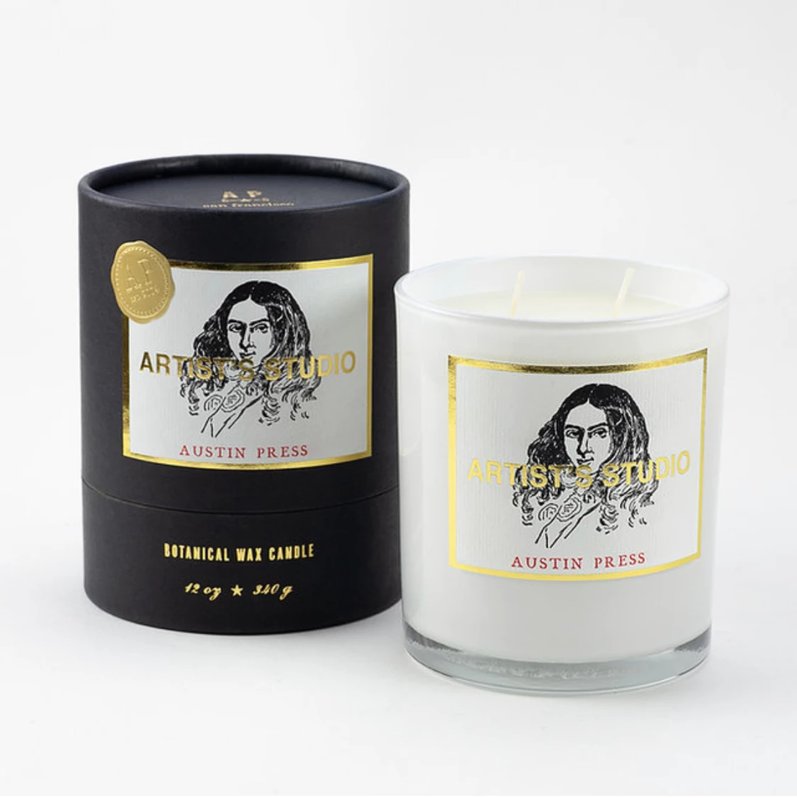 Poured into recycled glass vessels, with cotton wicks & letterpressed art.