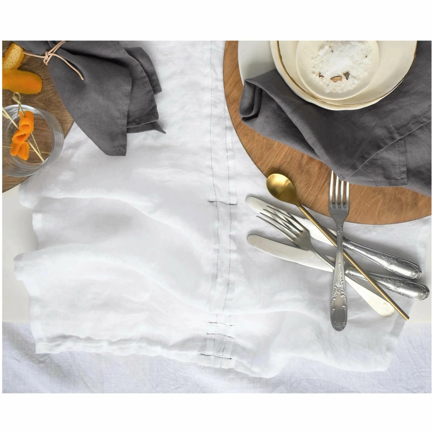 This gauzy linen runner add texture to any tablespace. Breezy and lovely, this runner says emulates details! Two narrow centered pleats and grey thread stitching are the center of this piece. Prewashed for heirloom softness and relaxed look this runner is an easy fit for any table, from casual get togethers to formal festivities.