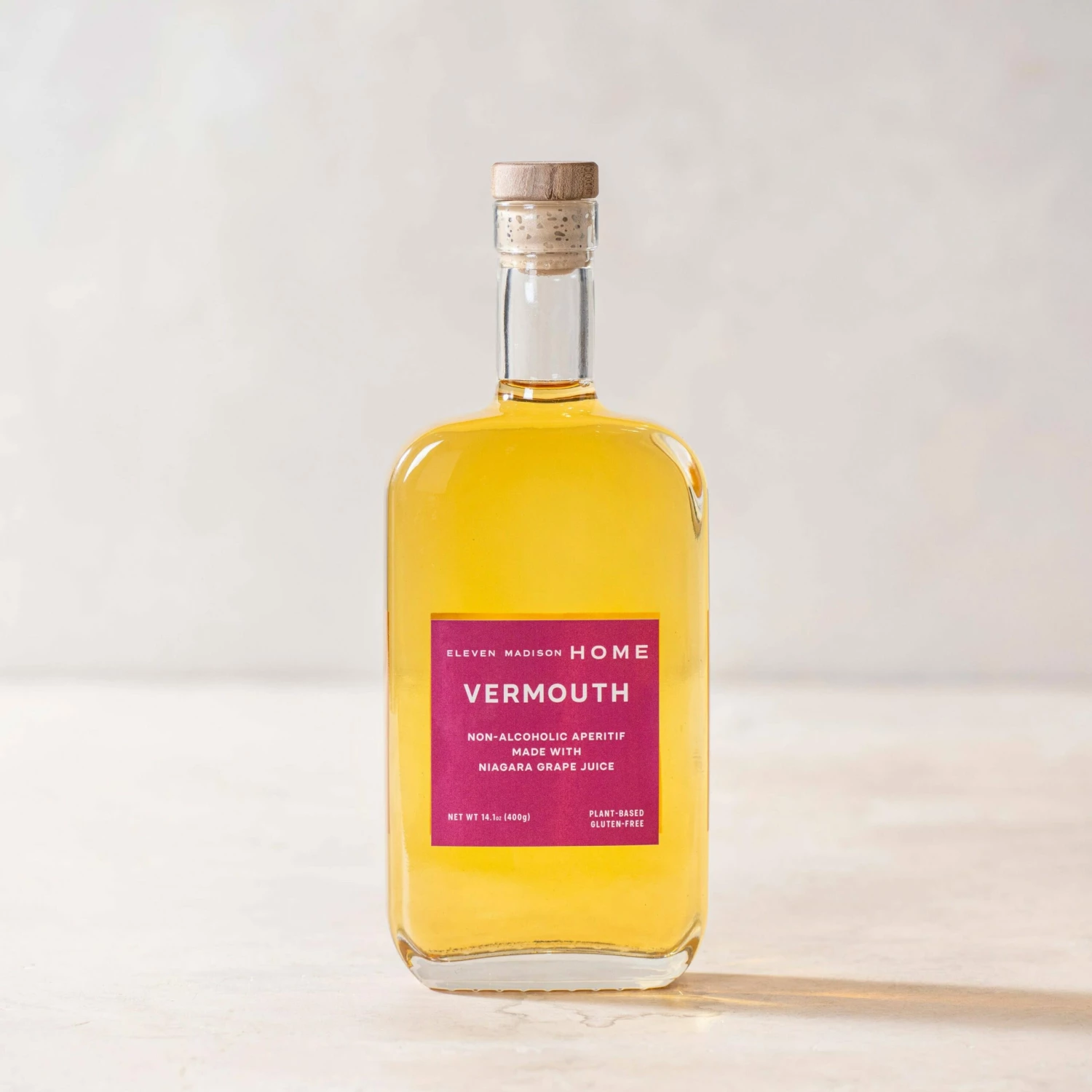 Each meal at Eleven Madison Park ends with a final sip of house-made vermouth, crafted from a base of seasonal fruits and a blend of herbs, spices, and aromatic roots. The bar director Sebastian Tollius developed this special no ABV version, made with Niagara grape juice and infused for 24 hours with aromatics such as wormwood, angelica root, and gentian. A semi-sweet vermouth, itβs delicious neat, but to take it up a notch, we suggest serving it with a twist of citrus and a splash of seltzer.