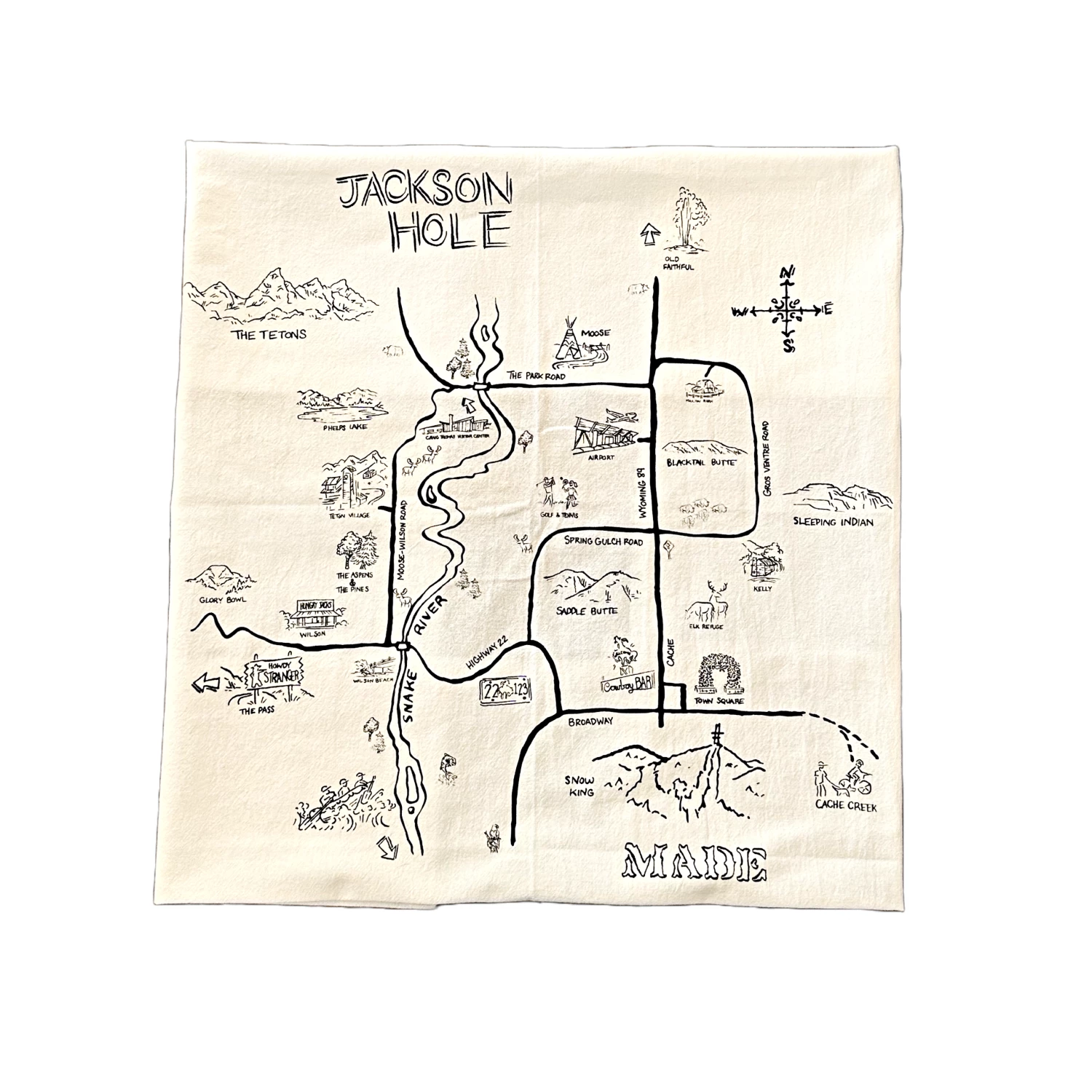 Featuring a map of Jackson Hole, this towel is perfect for drying dishes or wrapping up your favorite baked goods.Β