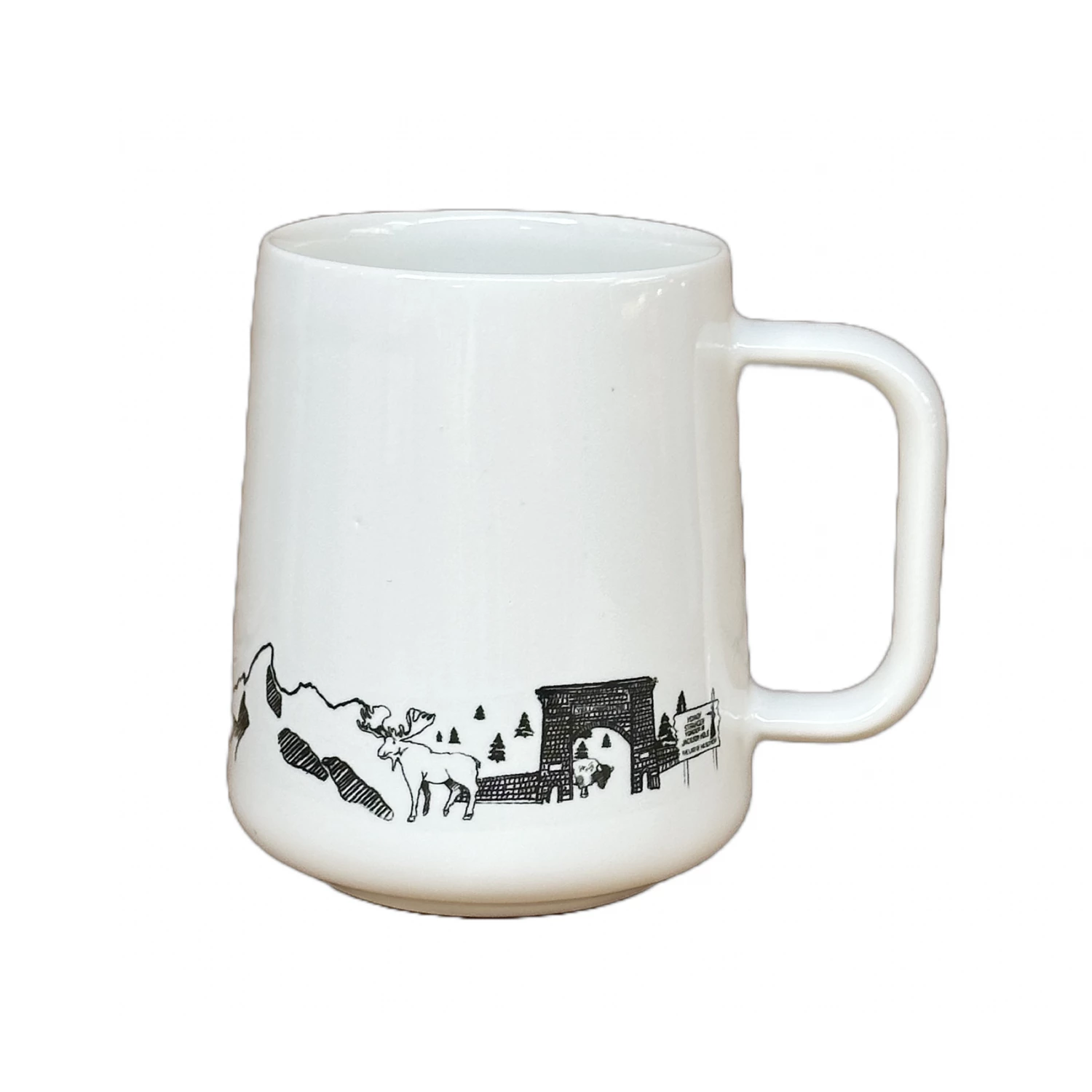 Custom made mug that shows the tram, the antler arches, the Tetons and the entrance to Yellowstone!