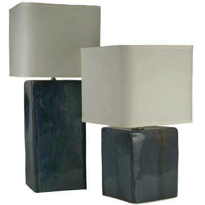 These simple and elegant ceramic lamps are hand-formed from a high-fire stoneware clay. Available in two sizes and a variety of nature-inspired glazes, these lamps fit perfectly in any setting. All lamps come with a cream linen shade & use a 3-way bulb up to 100 watts. Â