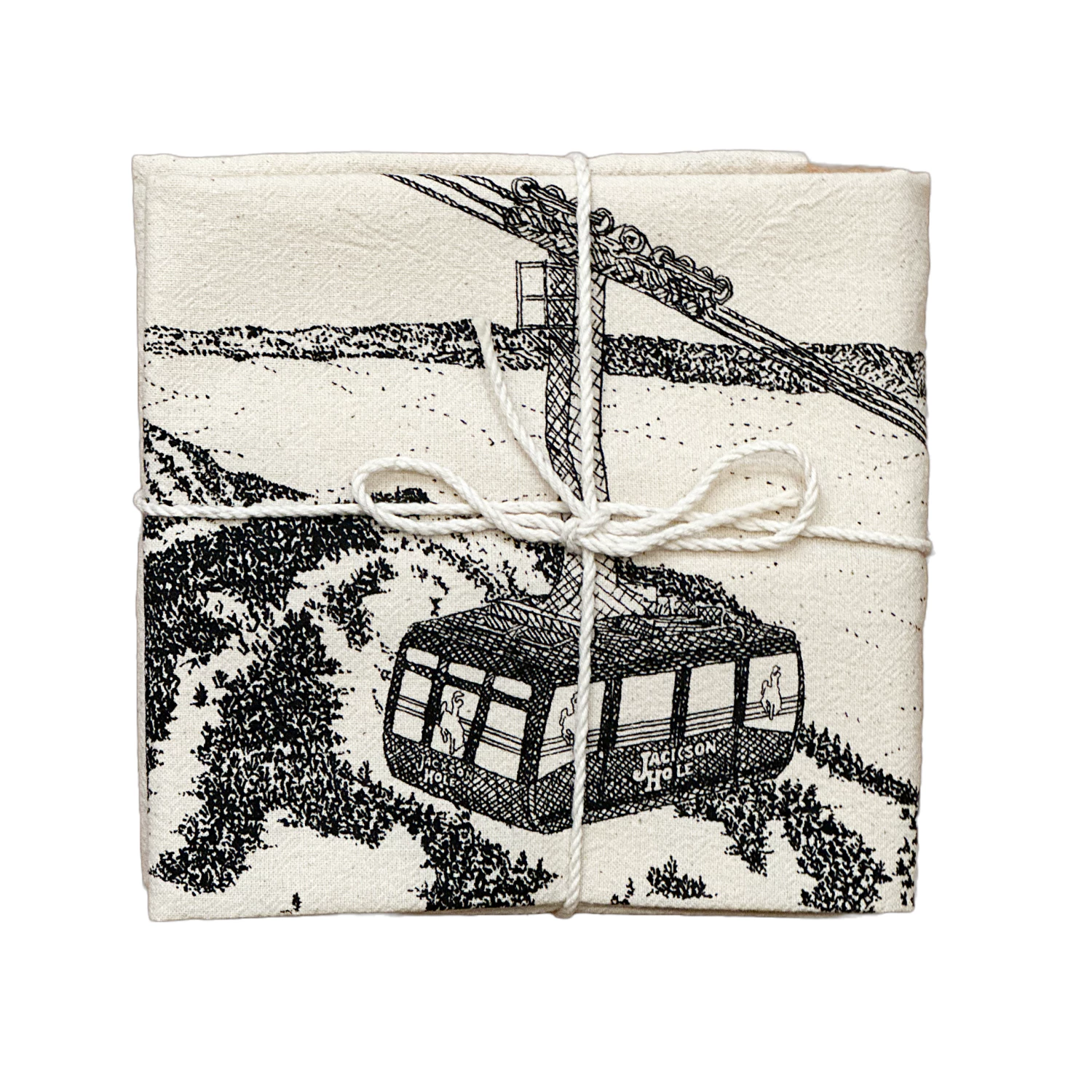Our generously sized flour sack towel, screen printed with the the Tram illustration and tied with a bow, ready to use or gift!